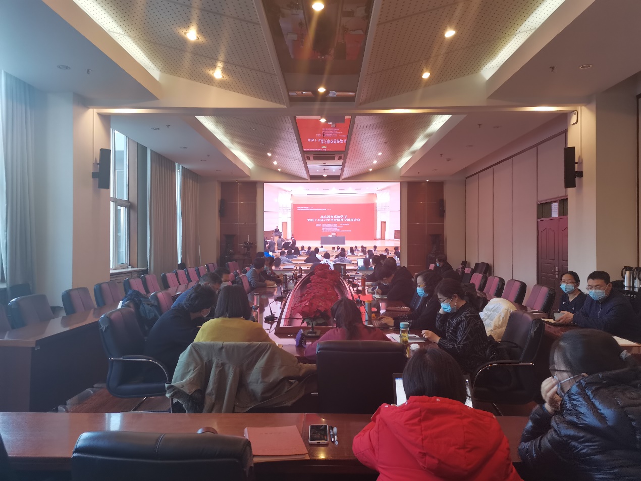 11月30日下午,开云网党委理论学习中心组在匠心楼一层第四会议室,集中参加北京教育系统学习党的十九届六中全会精神专题报告会——名师大家讲党史第十七讲暨北京市开云网思想政治理论课教师同备一堂课第十二期,通过直播方式听取了中央宣讲团成员、原中央党史研究室主任欧阳淞作的学习党的十九届六中全会精神专题报告。党委书记高喜军主持学习,中心组成员参加了学习。