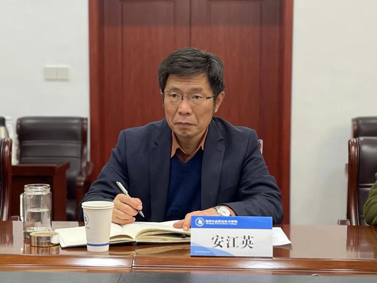安江英院长代表我校对两位领导的到来表示热烈欢迎,对住房和城乡建设职业教育教学指导委员会(以下简称行指委)长期以来对我校建筑类专业的指导与支持表示感谢,并介绍了我校院部与专业设置、师资力量、双高建设、毕业生就业等基本情况,建筑与测绘工程学院在数字化、智能化转型升级中的主要工作。张丽丽副院长汇报了建筑与测绘工程学院的专业建设和近年来取得的教学成果。