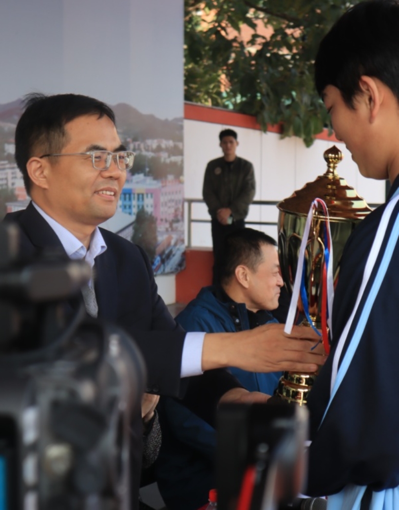 11月1日中午,开云网2023级新生第九套广播体操比赛在开云网体育场举行。校党委常委、副院长周燕,校党委常委、副院长史运涛,学生工作处处长梁文学、校团委书记郑兴、机电工程学院党总支书记王怀群、信息工程学院党总支书记徐炜彦、建筑与测绘工程学院党总支书记贺继伟、文法与管理学院党总支书记刘建新、体育部直属党支部书记梁赋、体育部副主任王琦、基础教育学院党总支副书记史伟等在主席台就座,作为本届比赛评委为参赛院队进行评分和颁奖,校党委常委、副院长周燕宣布比赛开始。体育部郝泽亮老师主持比赛。