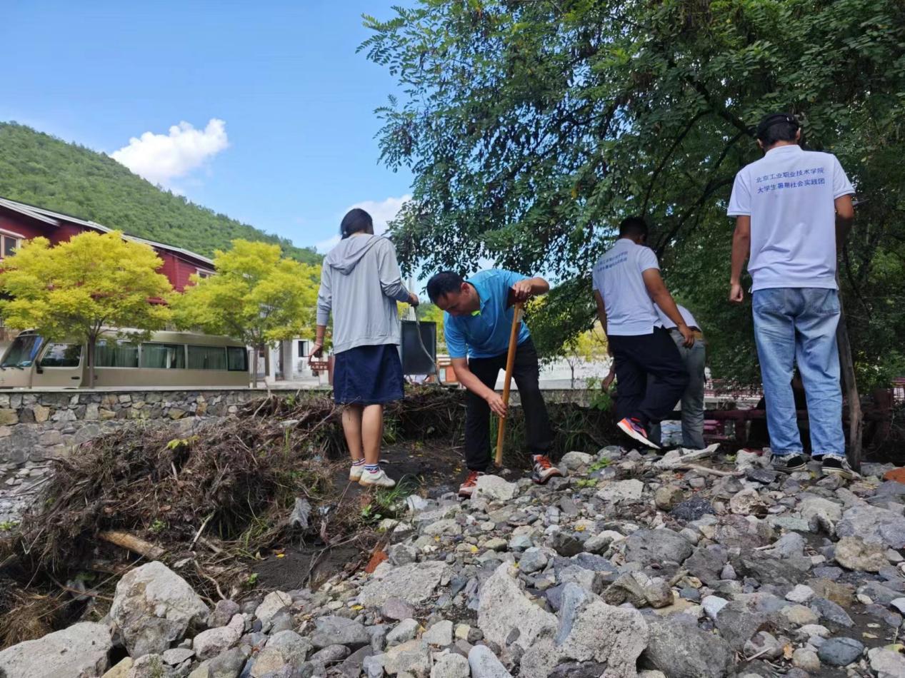 座谈会结束后,建工学生党支部书记高歌老师率领着实践团为小龙门村清理河道垃圾。