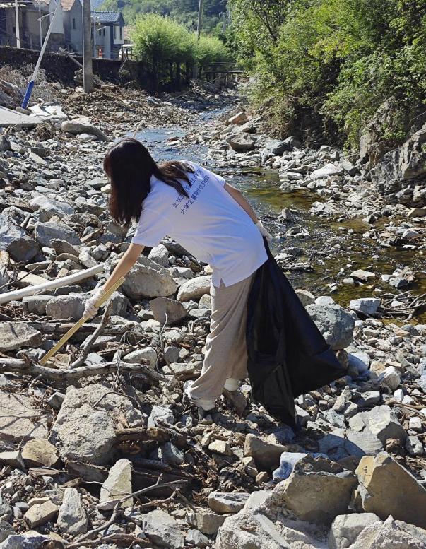 实践团为小龙门村清理河道垃圾