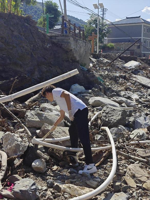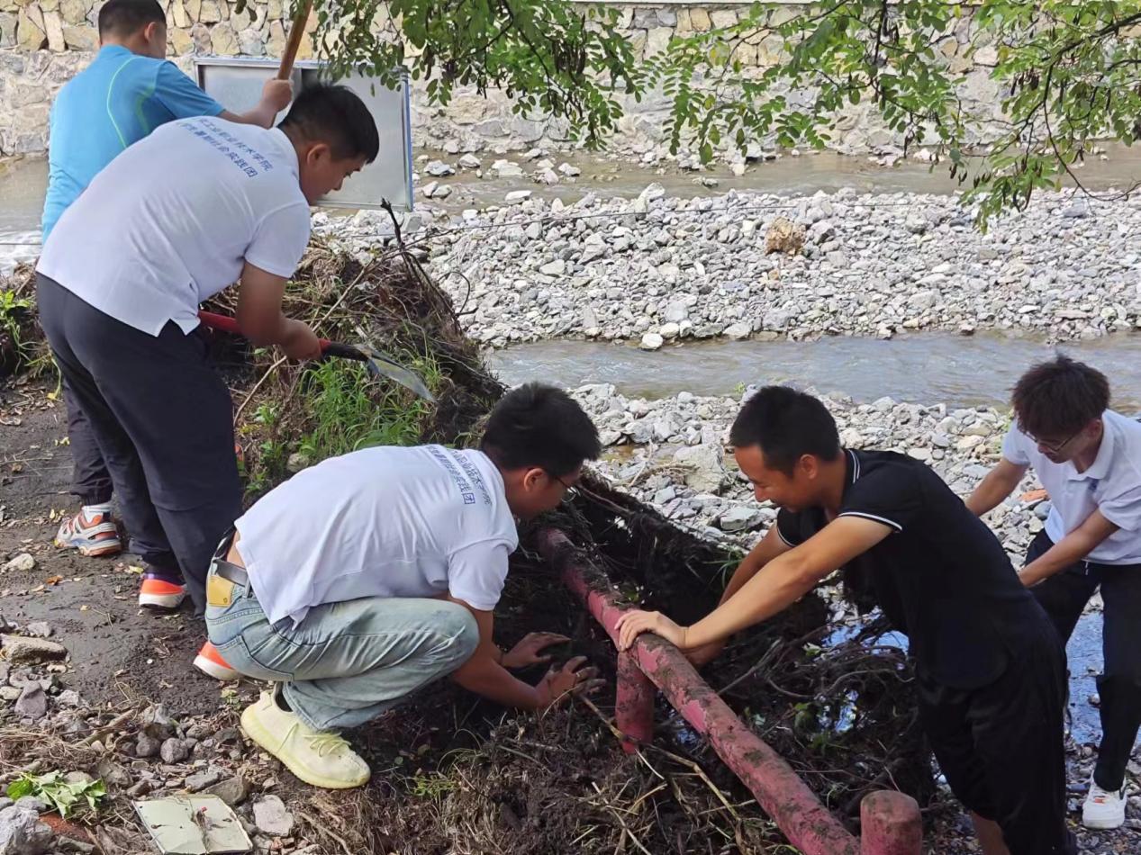 实践团成员亲身经历到洪水灾害过后的乡村中,十分痛心,并主动请缨,决心为西达么村做出力所能及的志愿服务。会后,高歌老师带领实践团成员为西达么村清除杂草,清理护栏淤泥。