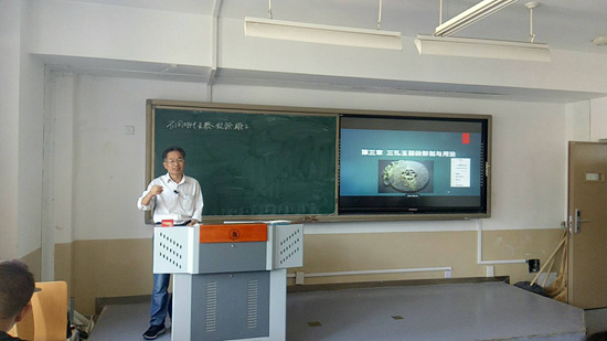 牛学超教授引经据典将玉石的品质同学生德育结合起来,以古喻今将玉石文化同文化自信结合起来,为珠宝专业的学生上了一堂生动的“思政课”。课上牛教授引用汉代许慎《说文解字》经典--玉是“石之美有五德者”,“仁、义、礼、智、信”五德,强调“德”对于一个人成长的重要性,并引用案例告诫学生要做像玉石一样品德高尚的人,再通过“三礼”(周礼、仪礼、礼记)玉器讲中国玉器文化,上升到文化自信,并告诉学生要坚持“四个自信”。