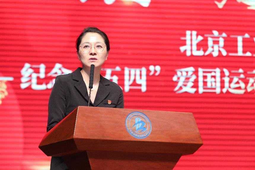 表彰大会在国歌声中拉开帷幕,党委常委、副院长沈莹代表开云网向受表彰的先进集体和个人表示热烈的祝贺!向在座的青年朋友和长期以来致力于青年事业的同志们致以最诚挚的问候和衷心的感谢!她在讲话中谈到,2023年是“十四五”规划和全面开启社会主义现代化建设新征程的重要之年,也是纪念“五四”爱国运动104周年,在这个具有特殊意义的历史时刻,我们纪念五四运动,重温光辉历程,传承五四精神!沈莹副院长结合习近平总书记给中国农业大学科技小院的学生回信精神向同学们提出了四点希望,一是加强习近平新时代中国特色社会主义思想学习,让理想信念在学习中不断坚定;二要树立报国之志,让爱国主义精神在心中牢牢扎根;三要锤炼品德本领,让青年之力在砥砺奋进中淬炼成钢;四要担当时代责任,让青春之花在党和人民最需要的地方绽放。最后,她激励同学们发扬“团结拼搏、求实创新”的北工院精神,为建设特色鲜明世界一流的高职院校而努力奋斗!厚植爱党、爱国、爱社会主义的情感,让红色基因、革命薪火代代传承,为全面建设社会主义现代化国家、实现中华民族伟大复兴中国梦努力奋斗!