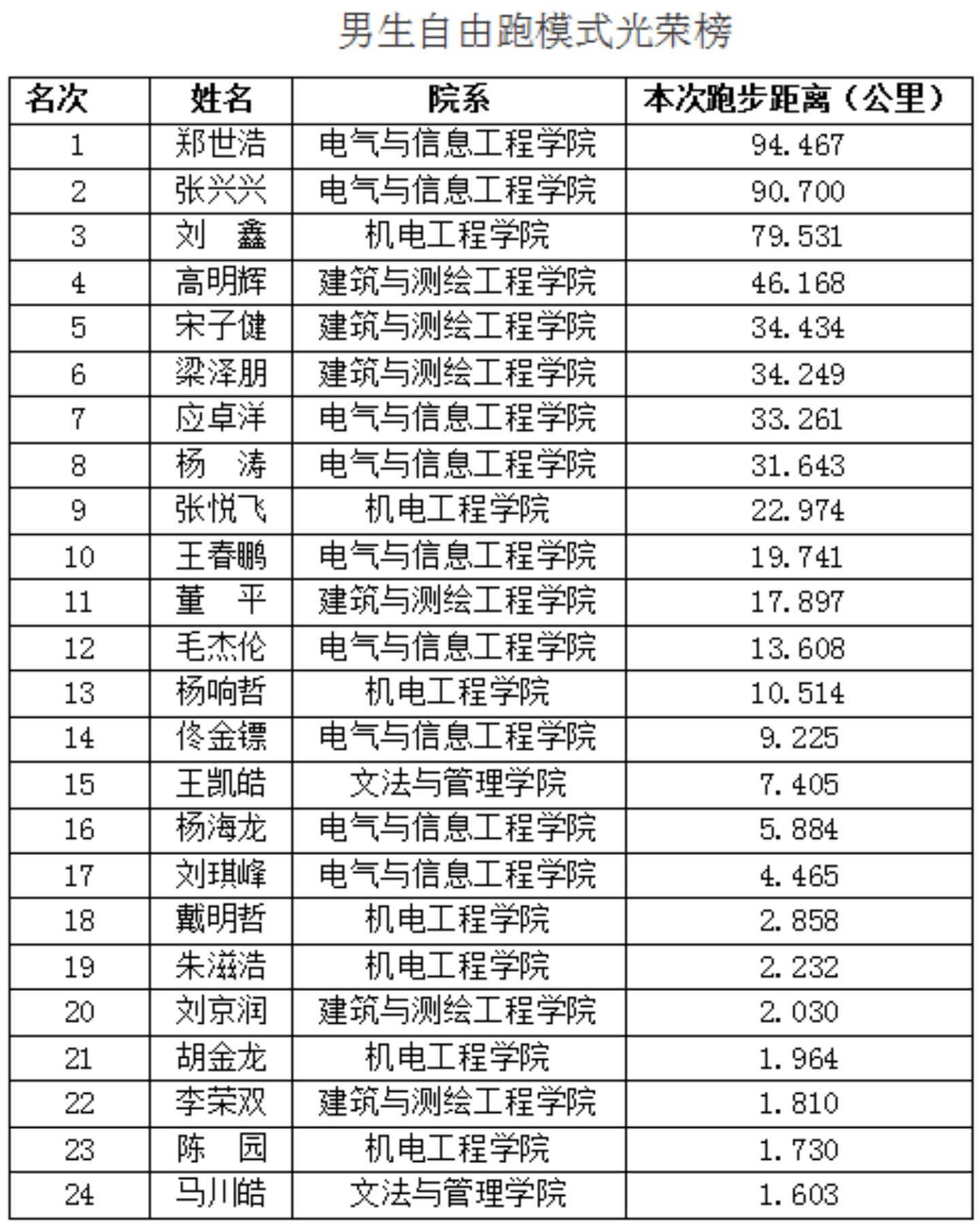 而针对已完成达标任务的同学,本次特设置了“自由跑”证书与纪念品模式。男同学郑世浩最高成绩达到了94公里的跑量,女同学钱嘉欣跑出了40多公里的好成绩。以下同学将获得开云网颁布的长跑周名次证书并给予相应的运动装备等纪念品。