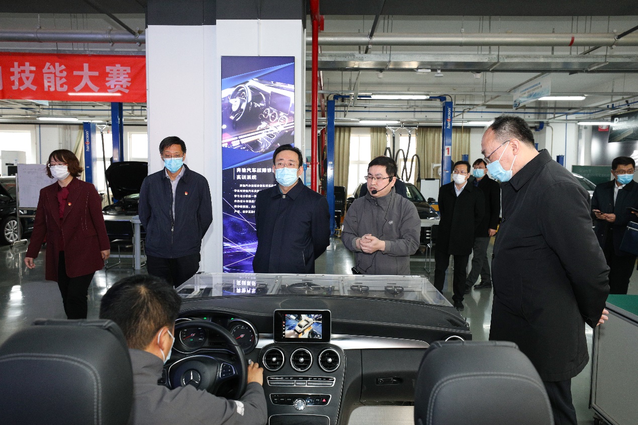 夏林茂书记一行在机电工程学院参观了我校中法能效管理应用人才培养和研究中心、汽车实训基地、数字化设计技术应用中心,全面了解学生实训教学、校企合作、全国技能大赛准备情况。在中法能效管理应用人才培养和研究中心,机电工程学院院长张春芝详细介绍了该中心聚焦首都智慧城市建设和绿色低碳发展目标,配备的先进能效管理技术、设备,描述了行业领先应用场景。夏林茂书记对中心开展的工作表示赞赏,他仔细询问了该专业学生人数、毕业生就业去向、就业率等情况,强调要充分认识做好毕业生就业创业工作的重要性和紧迫性,多措并举扎实做好毕业生就业创业指导服务工作。