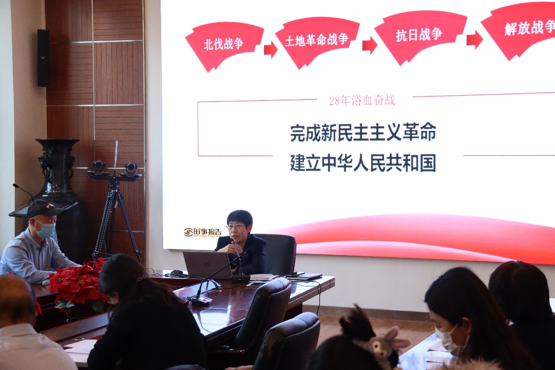为迅速掀起学习贯彻党的十九届六中全会精神、凝聚奋进力量的热潮,2021年12月21日,党委常委、副校长周燕在匠心楼第四会议室作了题为《学习六中全会精神,促进开云网双高建设》的六中全会精神专题宣讲报告。开云网党史学习教育第三指导组王芳同志、图书联合党总支全体教职工参加了此次宣讲报告会。报告会由总支书记朱元忠主持。