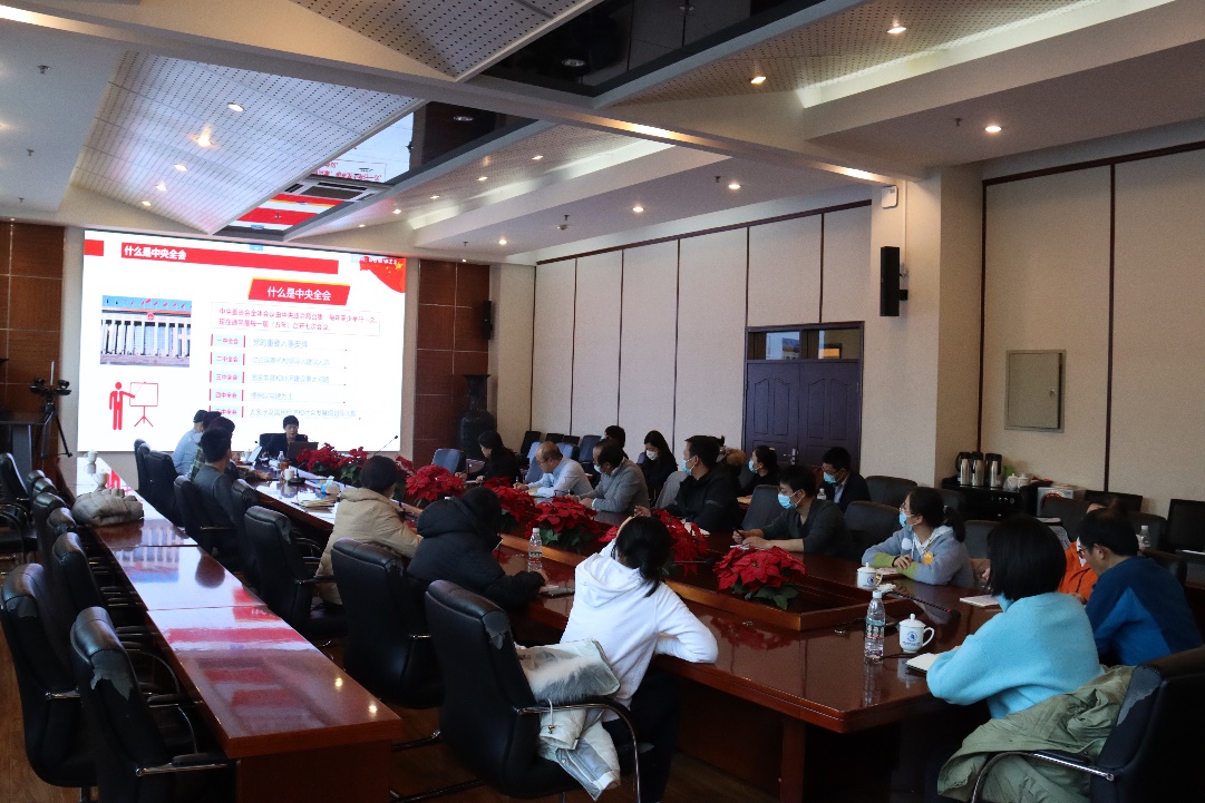 周燕副校长首先对党的十九届六中全会精神作了深刻解读,用“12233455101013”精炼地诠释党的十九届六中全会精神,包括“1”个《中共中央关于党的百年奋斗重大成就和历史经验的决议》;“2”个确立,确立习近平同志党中央的核心、全党的核心地位、确立习近平新时代中国特色社会主义思想的指导地位;“2”个结合,坚持把马克思主义基本原理同中国具体实际相结合、同中华优秀传统文化相结合,创立了习近平新时代中国特色社会主义思想。这个思想是当代中国马克思主义、二十一世纪马克思主义,是中华文化和中国精神的时代精华,实现了马克思主义中国化新的飞跃。马克思主义中国化的“3”次历史性飞跃,“3”个建设,新时代坚持和发展什么样的中国特色社会主义、怎样坚持和发展中国特色社会主义;建设什么样的社会主义现代化强国、怎样建设社会主义现代化强国;建设什么样的长期执政的马克思主义政党、怎样建设长期执政党;“4”个伟大成就,中国共产党从开天辟地,到改天换地,再到翻天覆地,到现在的惊天动地,带领中国人民从一个胜利走向另一个胜利。“5”大历史意义,“5”个必须,“10”个明确,“10”个坚持和“13”个领域的历史成就。周燕副校长通过数字深入浅出地解读了六中全会的会议精神,并重点就“两个确立”的重要论断实践依据、理论依据进行了解读,对党的百年的四个历史时期取得的伟大成就特别是进入新时代,以习近平同志为核心的党中央团结带领中国人民自信自强,守正创新,党和国家事业取得历史性成就,发生历史性变革进行了详细介绍。