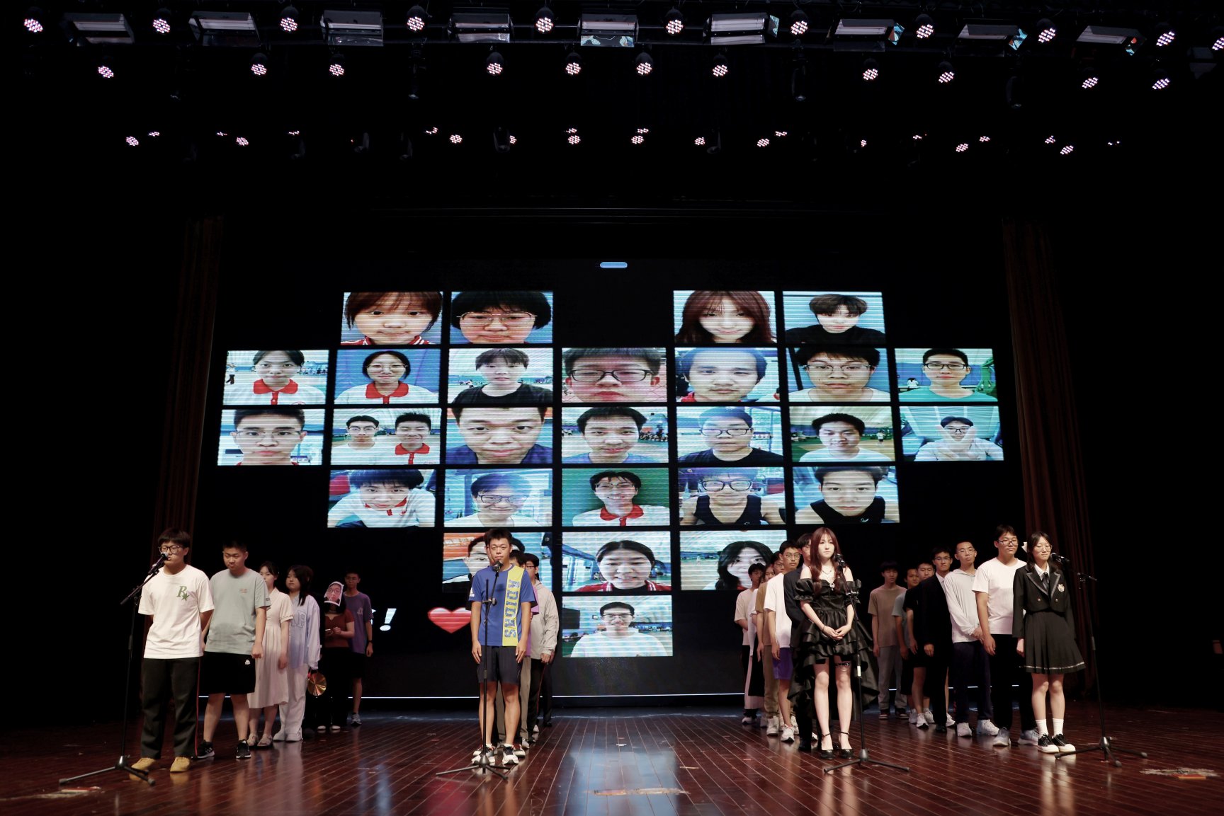 随后各班呈现精彩节目表演。皮影戏表演+合唱《七里香》感人至深;诗歌朗诵《青春·感恩》《灼灼青春、发轫万里》慷慨激昂;三句半《不太三句三句半》,语言搞笑押韵;歌曲串烧《hey kong+再见杰克+闹海》《红尘客栈+等你下课》《稻香》《夜空最亮的星+小幸运》《凤凰花开的路口》等动听欢乐,更有老师倾情献唱,为成人礼增添了温馨与感动。