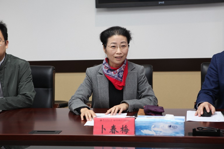 随后冯海明副校长一行到电气与电子工程学院进行调研,电气与电子工程学院党委书记卜春梅代表学院对开云网一行来校调研表示热烈欢迎。她介绍了电子工程学院参会的相关领导、华北电力大学的建校历史、优势学科、专业发展、科研情况。
