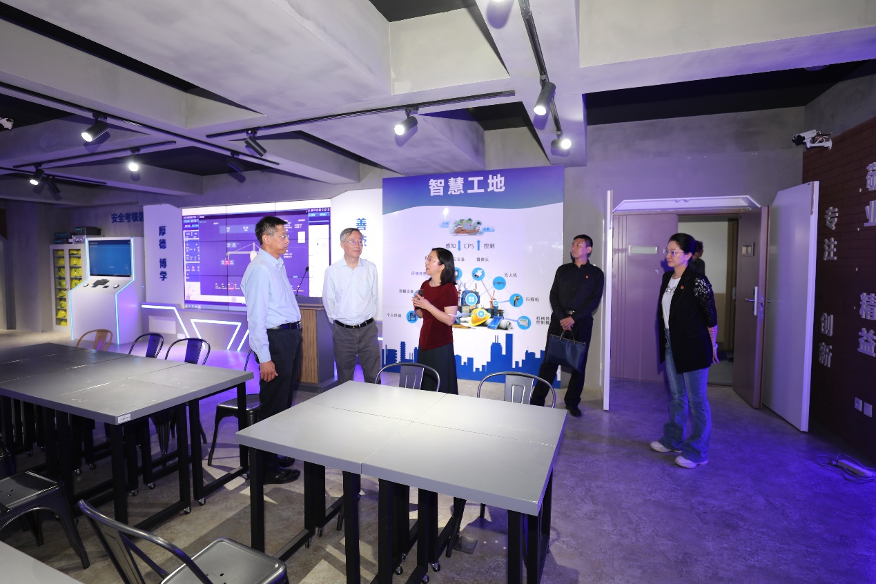 会后,指导组在高喜军书记陪同下,参观了我校中法施耐德能效管理应用人才培养和研究中心、汽车实训基地、数字化设计技术应用中心、BIM实训中心、智能建造工程中心等。