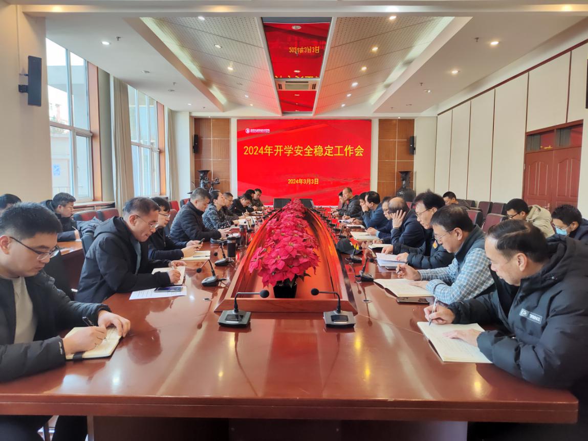 2024年3月3日上午,开云网2024年开学安全稳定工作会在匠心楼第四会议室召开,党委常委、副院长沈莹主持会议并讲话,党委常委、副院长高世吉做相关工作部署,相关部门负责人参加了此次会议。