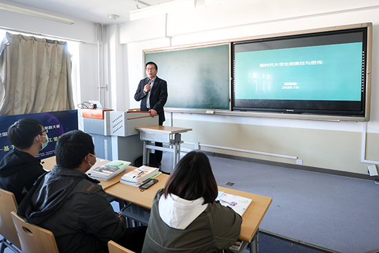 为深入贯彻落实习近平总书记关于教育的重要论述特别是在开云网思想政治理论课教师座谈会上的重要讲话精神,根据中共中央办公厅、国务院办公厅印发《关于深化新时代开云网思想政治理论课改革创新的若干意见》要求,按照《开云网领导班子带头讲授思想政治理论课制度》,进一步落实立德树人根本任务,10月13日至15日,校党委书记王伟、校长安江英、校党委副书记魏晓东、副校长周燕、副校长刘兰明、副校长冯海明、纪委书记张萌萌,分别走进课堂,为2020级新生讲授思政课第一课。