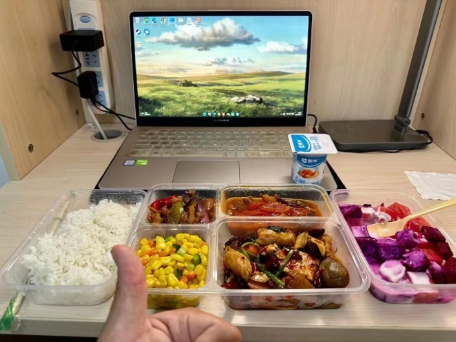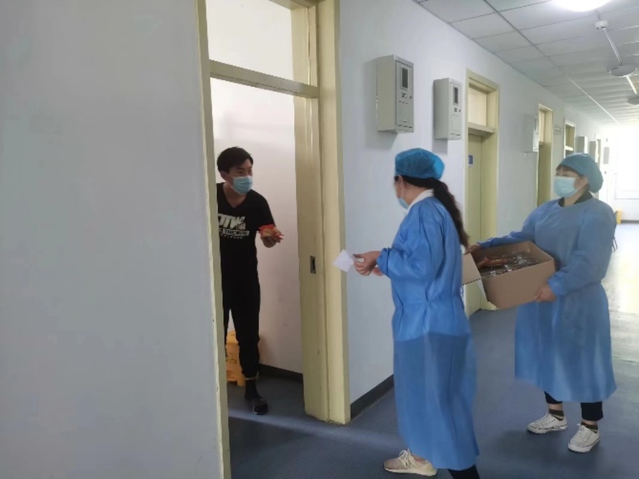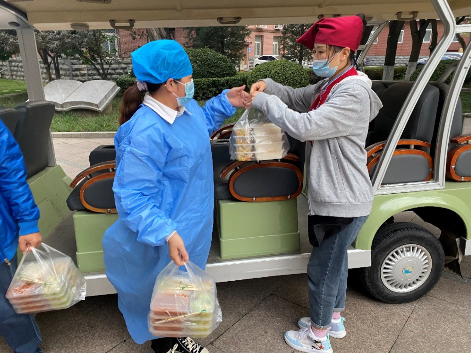 集中健康监测开始以来,每到饭点,就能看见这样一群身影,饮食中心的工作人员或步行或骑车,按时来到健康驿站,将热腾腾的饭菜交给驿站值守的工作人员,值守人员两两分组,默契配合,清点好餐食后,拉着小推车每层楼、每间房地给学生分餐送餐,他们送去的不仅仅是一份可口的餐食,也是一份暖心的关爱。8月28日开始,饮食服务中心已经为健康驿站运送隔离餐4625人次,每日想方设法为同学们变换菜色和口味,保证能量供给。中秋节当日,开云网还为健康驿站的同学们和工作人员准备了爱心月饼和中秋节祝福,抚慰了师生不能与家人团圆的思念之情,也进一步坚定了全校师生打赢疫情防控阻击战的信心和决心。