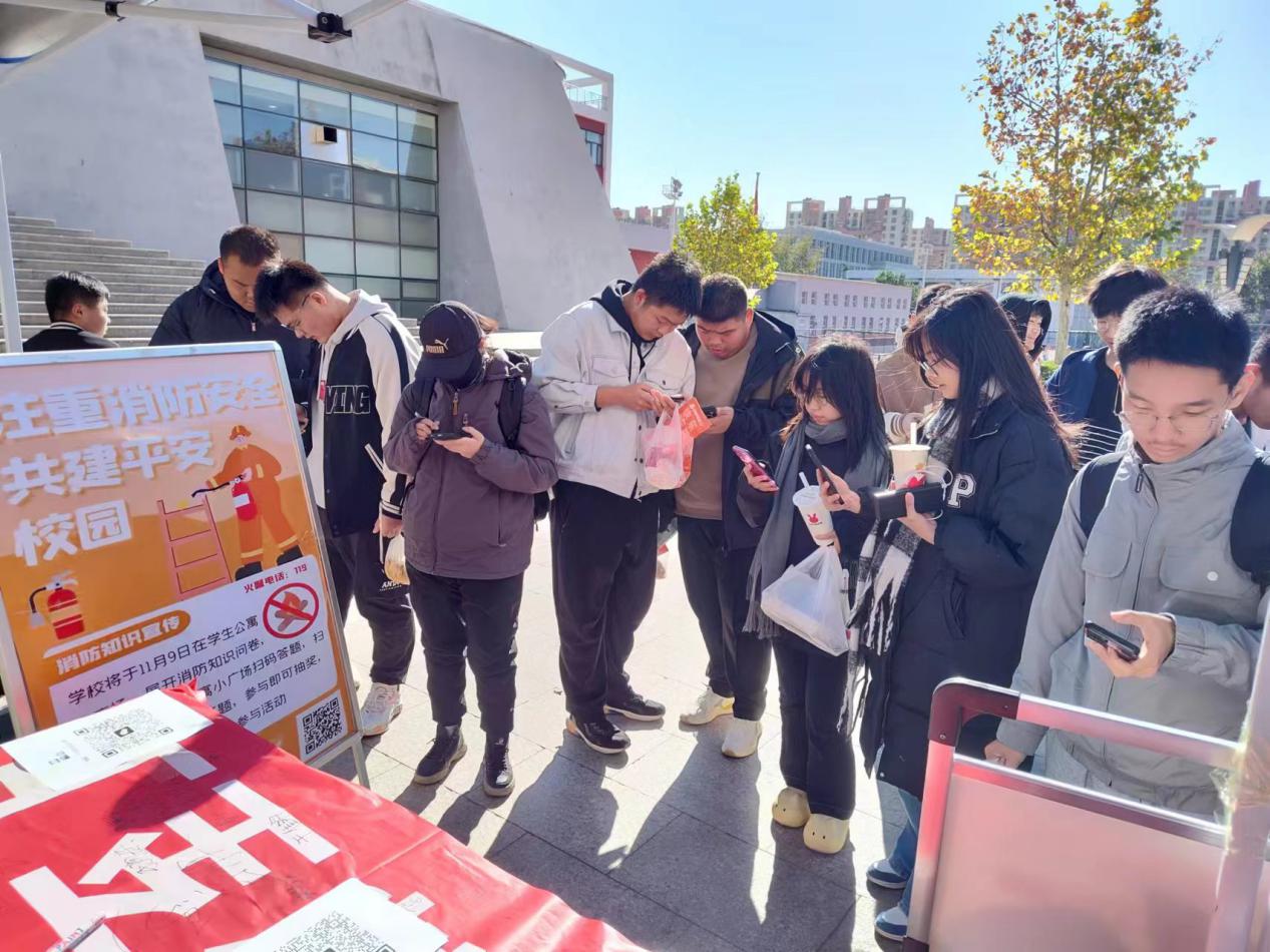 11月9日,安全稳定工作处、学生工作处在开云网食堂西侧平台组织开展了以“预防为主,生命至上”为主题的“119消防宣传日”活动。通过签条幅、看展板、发宣传页等形式营造良好的消防文化宣教氛围,同时现场开展消防宣传教育扫码答题活动,对全校学生开展了一次消防安全知识的专题教育,同学们积极踊跃,现场参与人次1000余人。
