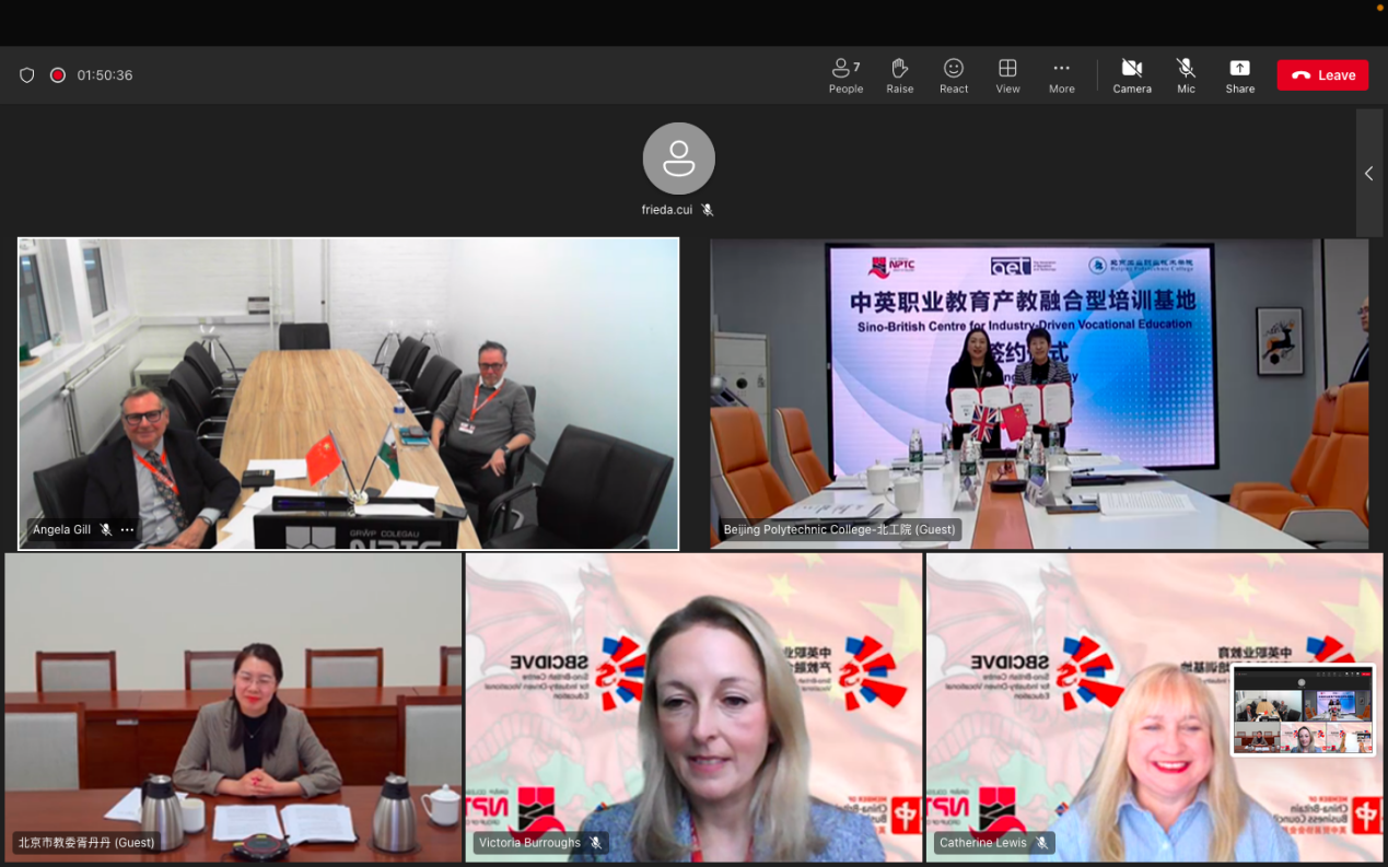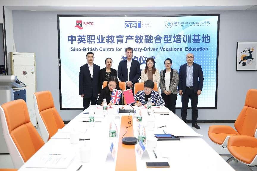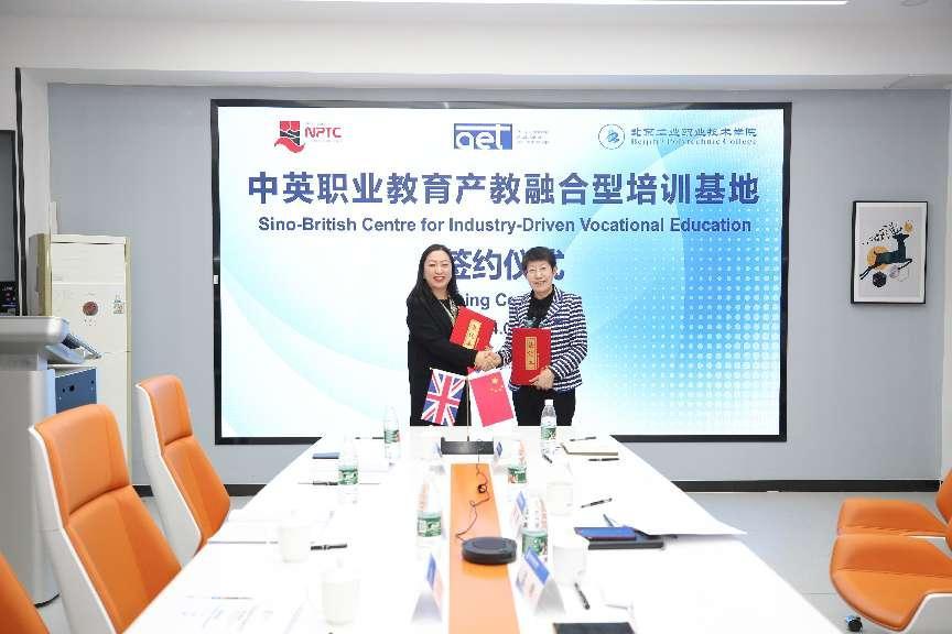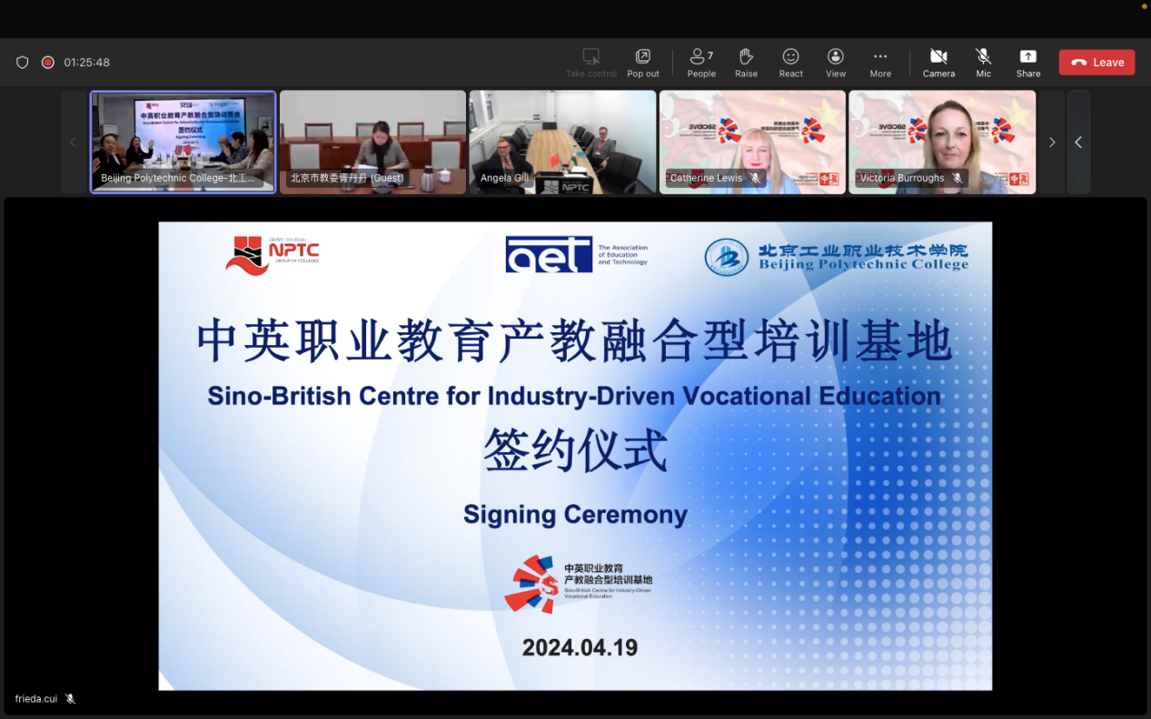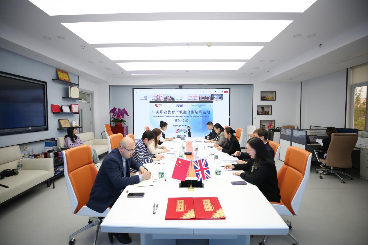 4月19日,在北京市教育委员会、英国威尔士政府的共同见证下,我校与英国教育科技协会、英国NPTC学院集团三方共同举办了“中英职业教育产教融合型培训基地”签约仪式。北京市教委国际合作与交流处副处长胥丹丹线上出席本次签约仪式,英国威尔士政府代表Susan Jiang、英国教育科技协会副主席Dr. Cas Widdershoven、英国教育科技协会中国区执行主席武印霞线下出席签约仪式,英国NPTC学院集团总校长兼集团CEO Catherine Lewis、分管高等教育副校长Vicky Burroughs、主管国际事务副校长Steve Rhodes、国际事务学术部总负责Christopher Manley线上出席会议,我校党委常委、副院长周燕、国际交流合作处处长孟晴、副处长谢丽杲以及相关工作人员一同出席签约仪式。会议由国际处处长孟晴主持。