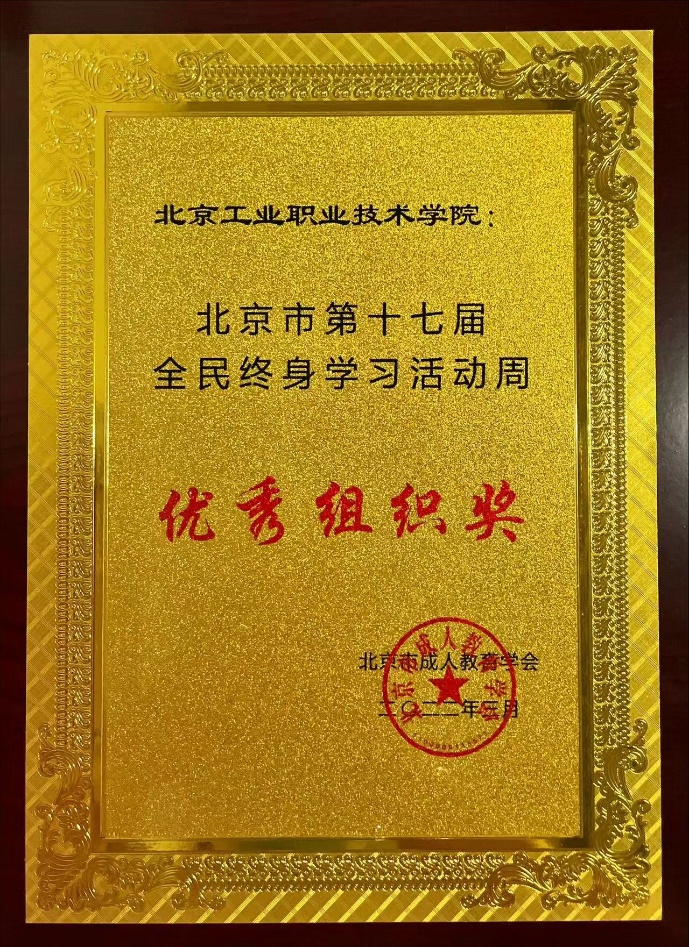 为深入贯彻落实党和国家关于“加快发展继续教育”和“办好全民终身学习周”的精神,根据《教育部办公厅关于举办 2021 年全民终身学习活动周的通知》(职成教司函[2021]20 号)以及《北京市教育委员会关于举办北京市第十七届全民终身学习活动周的通知》(京教函[2021]545 号)的有关精神,北京市第十七届全民终身学习活动周于2021年12月9日开幕。近日,我校在北京市第十七届全民终身学习活动周先进单位表彰中获得“优秀组织奖”。