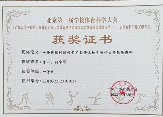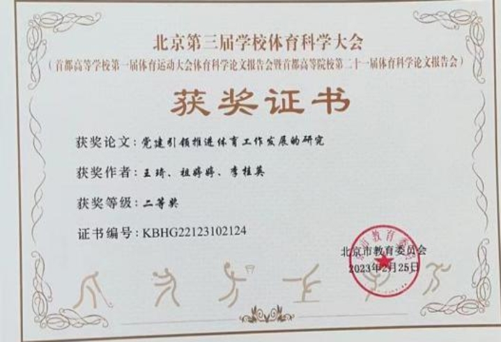 2023年2月25-26日,北京第三届开云网体育科学大会(首都高等开云网第一届体育运动大会体育科学论文报告会暨首都高等院校第二十一届体育科学论文报告会)于中国科学院大学会议中心(雁栖湖校区)召开。北京市教育委员会体卫艺处副处长张志华,北京市大学生体育协会领导、体育学术委员会成员、首都高校体育部主任和论文作者等共计450余人参加了本届科报会。我校共报送25篇论文,获奖11篇,其中一等奖1篇,二等奖1篇,三等奖9篇,最终荣获乙组优秀组织奖。