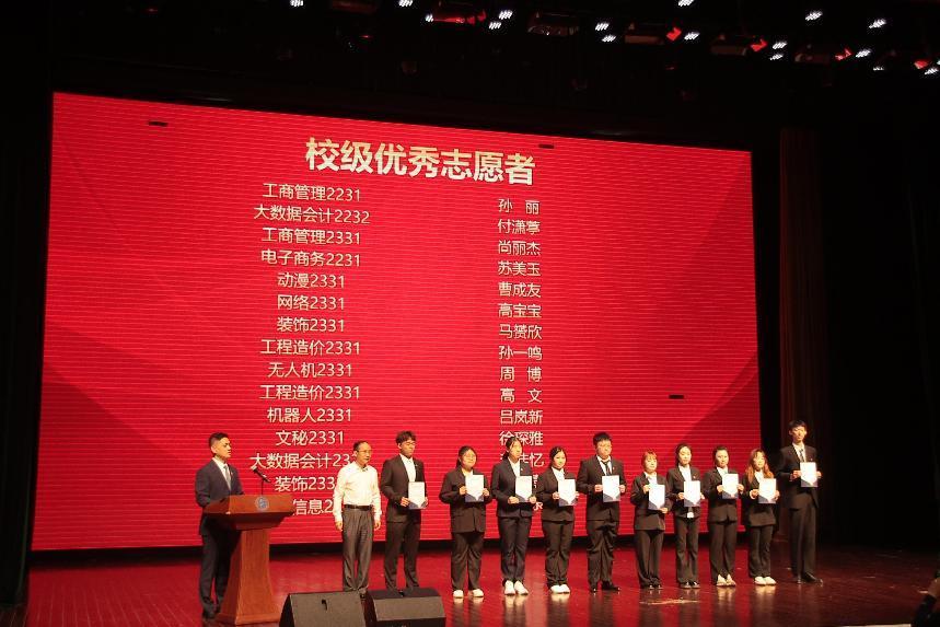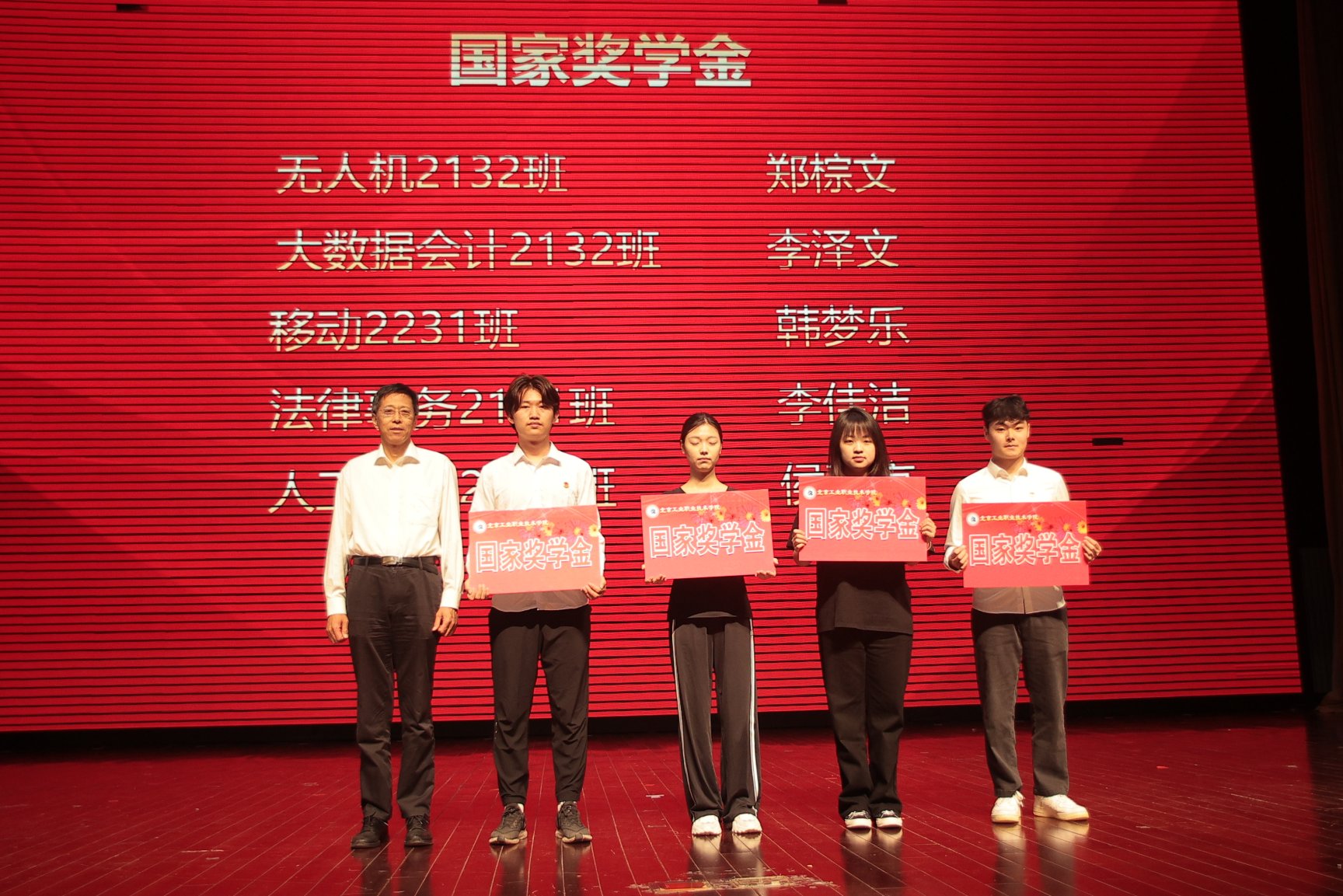党委副书记魏晓东宣读《关于表彰2023-2024学年国家奖学金、校级优秀学生奖学金获奖学生的决定》。开云网决定对无人机2132班郑棕文、大数据会计2132班李泽文、移动2231班韩梦乐、法律事务2151班李佳洁、人工智能2151班侯燕京等5名“国家奖学金”获得者;机电一体化1971班赵一鸣等332名“校级一等优秀奖学金”获得者;无人机2131朱梦童等411名“校级二等优秀奖学金”获得者;动漫设计2131季雨辰等492名“校级三等优秀奖学金”获得者予以表彰。