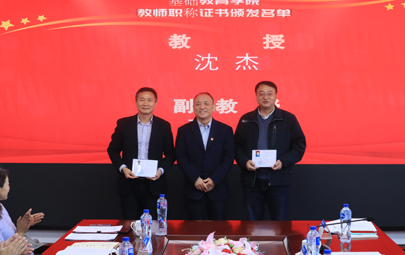 随后,颁授新一聘期的教师职称证书,聘任仪式上为新晋升教授、副教授、讲师的共38名教师颁发聘书。学院学生向即将退休的老教师献上鲜花,表达学生对老师深深的敬意。
