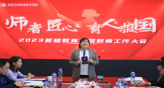 最后,魏晓东副书记作总结讲话,他首先对基础教育学院教师队伍的建设表示肯定,并分享几点思考:第一,基础教育学院教师是北工院学生第一次扣好人生第一粒扣子的老师,要切实落实好立德树人的根本任务,牢记初心使命,做到“为党育人、为国育才”;第二,作为基础课教师,务必要重点把握课程内涵,做好课改工作,职业教育人才的培养要做到宽基础;第三,新时代日常教育教学工作中,要注重培养热爱祖国、怀揣中华民族伟大复兴中国梦的社会主义建设者;第四,教育作为我国强国建设中的重要一环,如何培养合格的社会主义建设者和接班人,努力做到人师和经师的统一,是每个教师都应该思考的问题。要真正将“如何培养人、培养什么样的人、为谁培养人”的理念,内化于心,外化于行。