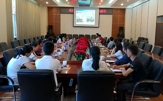 周燕副校长向客人介绍了我校的基本情况、办学历史、办学特色、办学成效,重点介绍了我校在“一带一路”建设中所做的探索和课程思政的思路与做法。