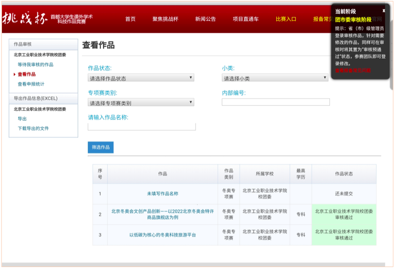 经过指导老师认真辅导及项目审核评比公示,最终“基于STM32的智能导盲杖”、“伺服爬绳器”等十项作品通过校内选拔,推荐至北京市参加本届大赛的主赛道比赛;“北京冬奥会文创产品创新——以2022北京冬奥会特许商品旗舰店为例”、“以低碳为核心的冬奥科技旅游平台”两项作品通过校内选拔,推荐至北京市参加本届大赛的冬奥专项赛。校内选拔赛结束后,校团委和招生就业处组织专家针对所有推荐参赛作品及参赛团队进行了一对一的赛前辅导。