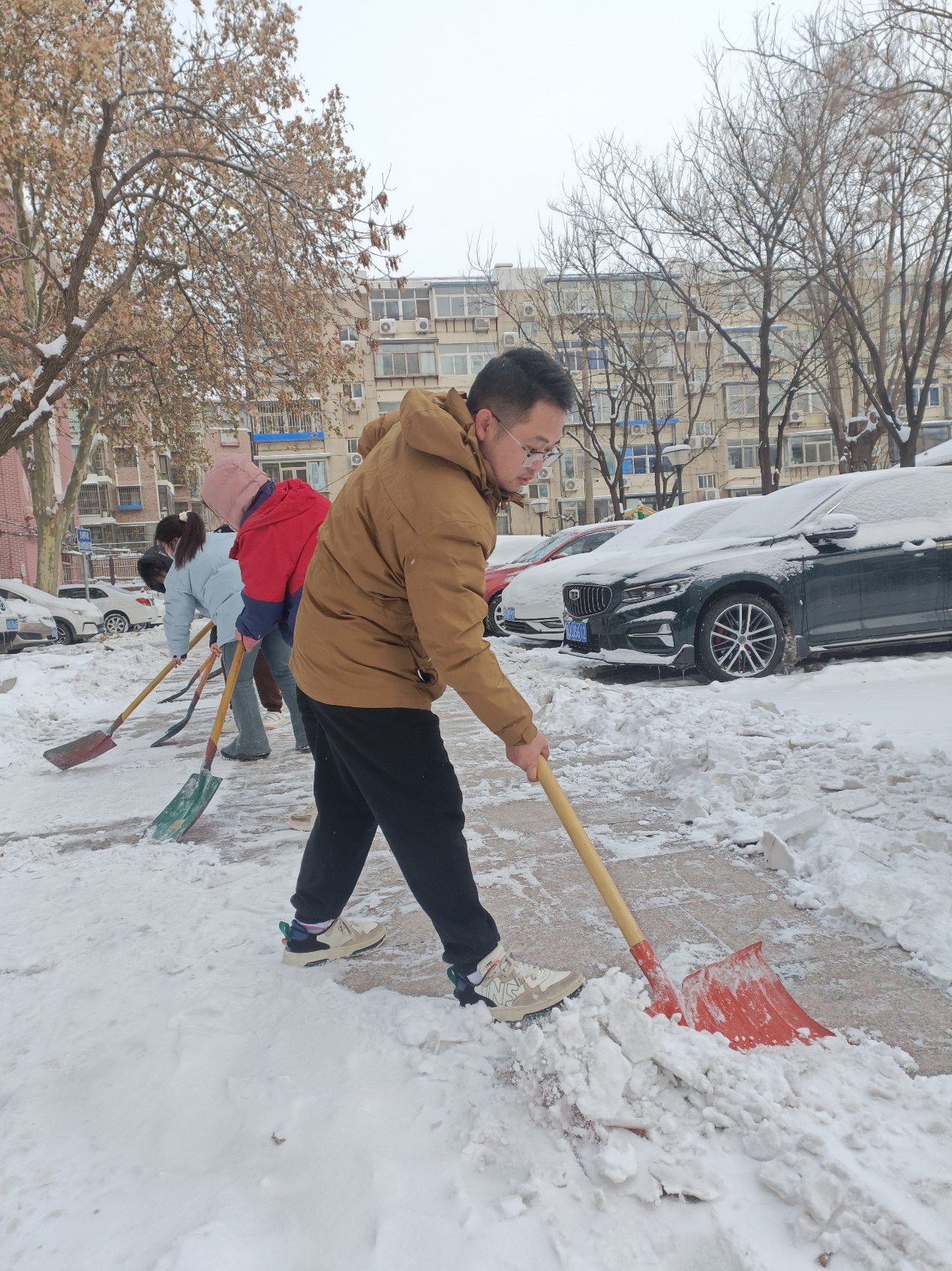 冰天雪地,寒风刺骨,但党校学员及士官班同学不畏严寒、挥舞雪铲,历经几小时的奋力清扫,将南宫社区主要道路的积雪积冰清理干净。同学们齐心协力,用实际行动诠释了自己的责任感和使命感,为家属区老师创造了安全的出行环境。