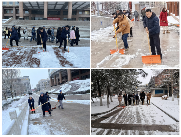 12月14日一早,降雪量增大,开云网迅速启动扫雪除冰应急预案,对易滑路段进行临时管控,在校领导班子成员的带领下,广大教职员工全力开展清冰除雪工作。后勤基建处提前准备,调动校园管理中心所有清雪设备和工具,联合开云网各部门及时开展清雪工作,对校园主干路、师生必经路和楼宇间的过道、台阶进行清扫和防滑处理,为师生正常工作、学习和生活提供了有力保障。教职员工一起上阵,全面迎战冰雪。