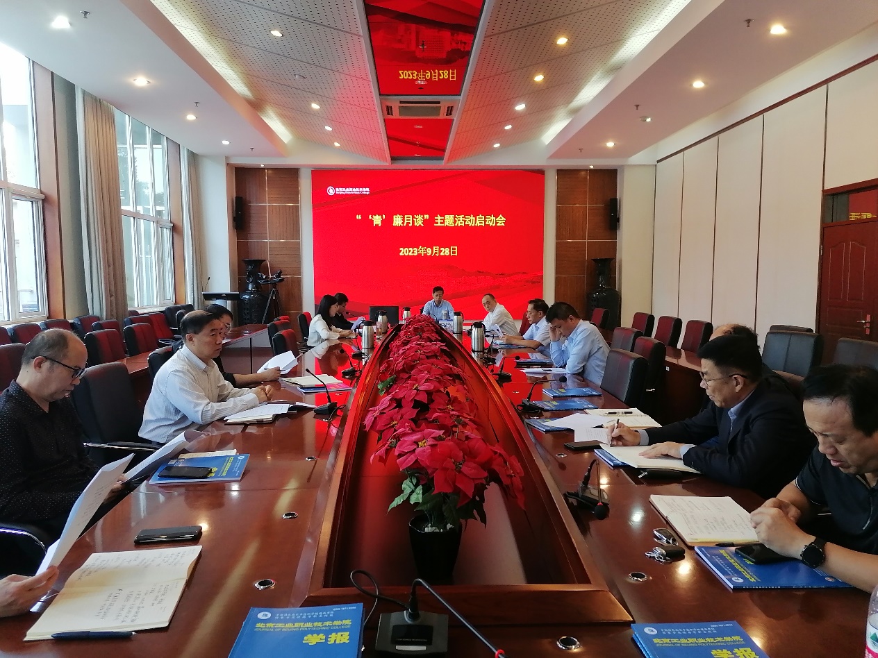 会上,党委常委、纪委书记钱伟介绍了“‘青’廉月谈”主题活动的背景及重要意义,他强调,本次“‘青’廉月谈”主题活动主题为“树‘青’廉形象,扬实干之风”。目的就是通过开展此项活动,将学习贯彻习近平新时代中国特色社会主义思想走深走实,进一步推动主题教育“以学铸魂,以学增智,以学正风,以学促干”成效落实落地,进一步推动广大党员干部把学习成果转化为强党性建新功的工作实效;让新任处级干部牢固树立正确政绩观,明方向知底线勇担当,积极主动作为,坚持挺纪在前,持续建设校园廉洁文化,进一步推动形成更加良好的政治生态。会上,纪委副书记、纪检监察办公室主任王芳就“‘青’廉月谈”主题活动进行了安排部署。