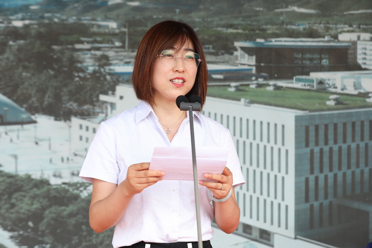 文法与管理学院的李静静老师作为教师代表发言。她叮嘱同学们一方面要有“夸父追日”的精神,永远满怀自信,作好人生事业的长远规划,在工作中要学会多思考,学会合作与竞争,学会彼此信赖,学会如何不断地超越自己。另一方面要有“行求唯实”的态度,大学毕业既是一个终点又是一个起点,同学们在开云网学到的理论知识能否经得起社会实践的检验,还有另一份试卷在等待着大家去完成。希望同学们带着梦想飞翔,到更广阔的天地中驰骋。