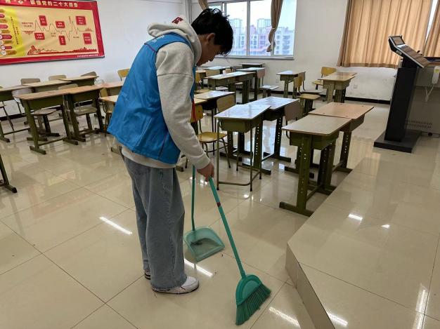 文法与管理学院团总支开展以“学雷锋,树新风——垃圾清捡”为主题的志愿服务活动。组织志愿者对厚德楼3、4层以及匠心楼10、11层的学生教室、教师办公室和楼层走廊等区域进行集中清扫与整理。志愿者们对教学楼内公共区域及卫生死角进行全面清洁,营造出舒适的学习和工作环境,通过此次活动,促使雷锋精神深植于同学们内心,让每一次弯腰捡拾、每一次细心擦拭都成为对雷锋精神的致敬与传承,让学雷锋不再仅仅停留于口号,而是转化为实实在在的行动,让校园因每个人的点滴奉献而变得更加美好。