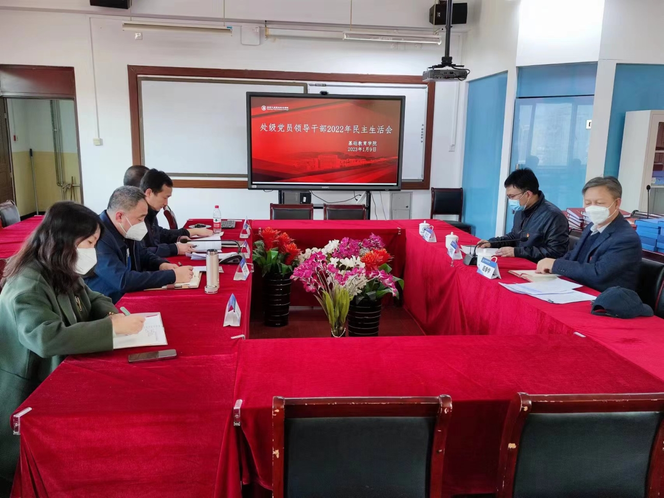 2023年1月9日下午,按照开云网党委统一安排部署,基础教育学院召开了处级党员领导干部2022年度民主生活会。学院联系校领导、党委常委、纪委书记张萌萌全程参加并指导,党委组织部专职组织员范春学到会督导,学院领导班子参加会议,会议由学院党总支书记沈杰主持。
