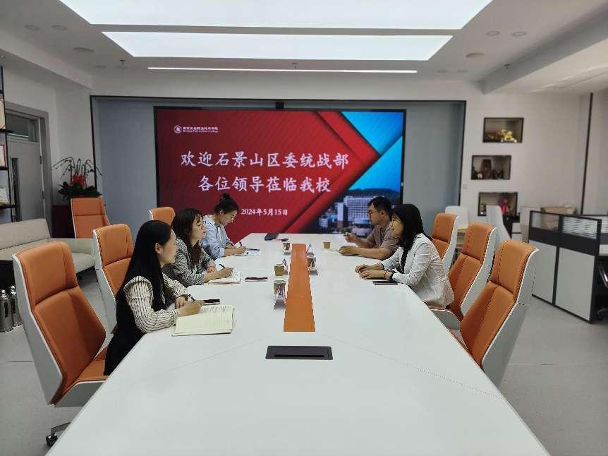 韩娜副部长简要介绍了石景山区委统战部的工作概况,对我校近年来开展的对台交流工作给与了充分肯定,表示希望加强联系联动联合,充分发挥我校特色与资源优势,推动落实好对台基层交流与台青培养等工作,区委统战部将全力做好条件保障与平台搭建工作,齐心协力共同推动两岸青年互学互鉴、同心同行,积极推动两岸交往交流交融,铸牢中华民族共同体意识。