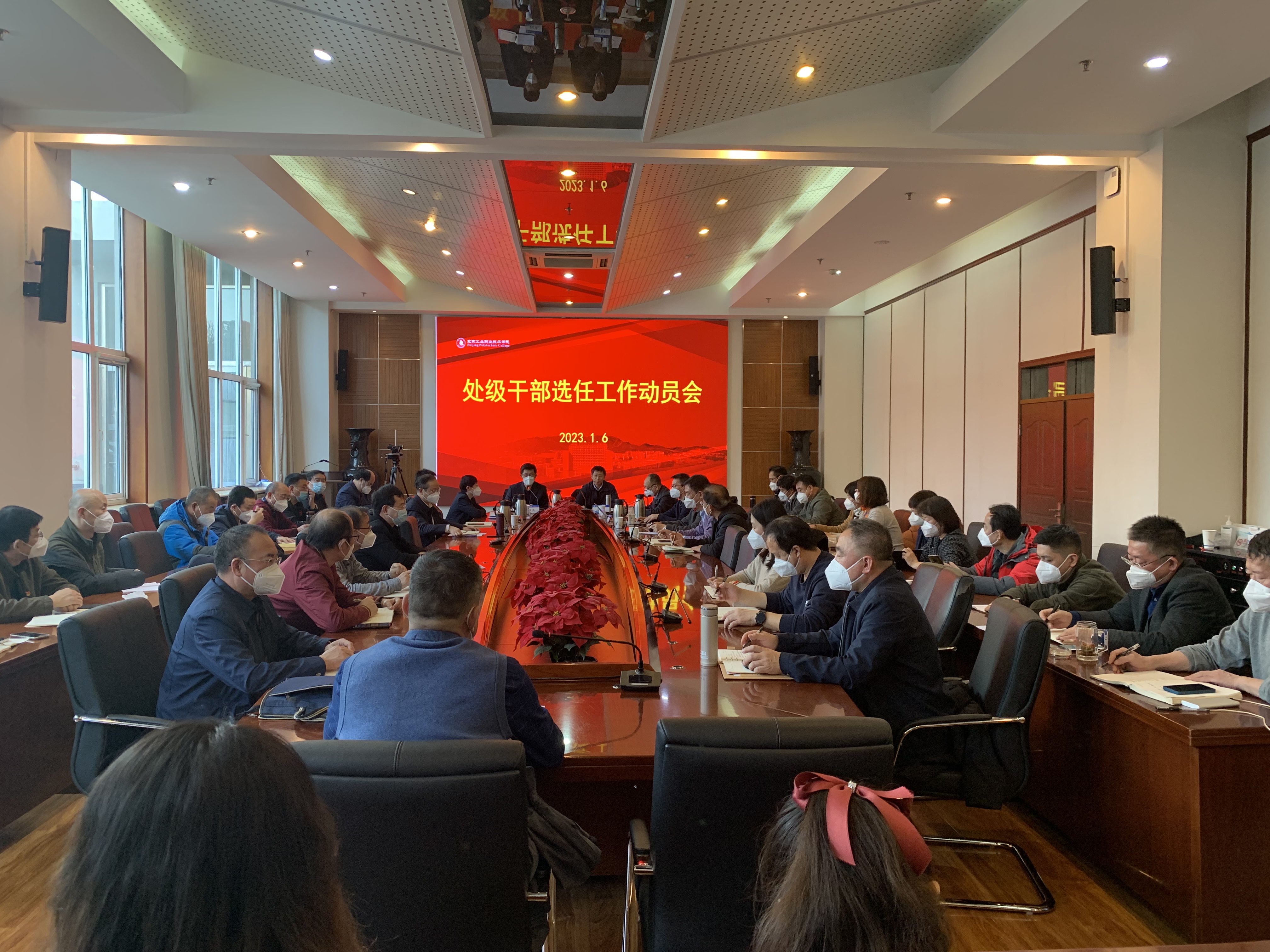 2023年1月6日上午,我校在匠心楼第四会议室召开处级干部选任工作动员会。全体校领导和中层干部参加了会议。党委副书记、院长安江英主持会议。