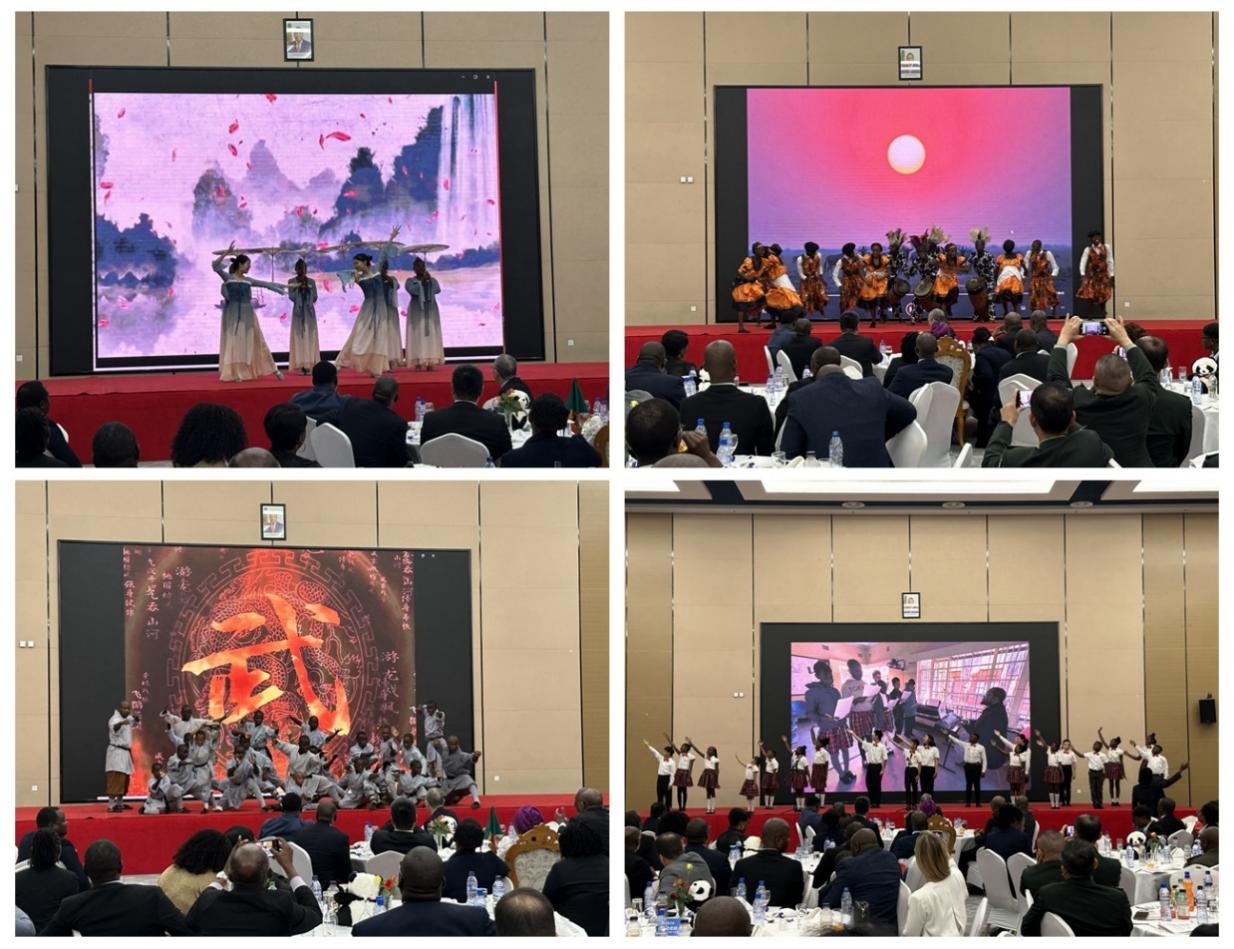 招待会上播放了中赞友好合作视频,中赞职院作为中非职业教育合作的代表得到展示。赞比亚大学孔子学院,赞比亚少林寺等为嘉宾表演了中国传统舞蹈、武术、赞比亚舞蹈等节目,现场气氛热烈,来宾畅叙友谊,盛赞中国发展成就,祝愿中赞关系不断迈上新台阶。
