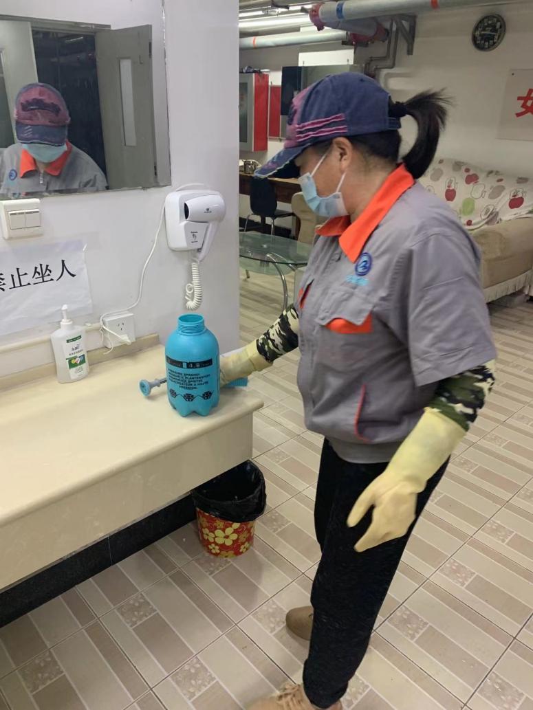 校园封闭期间,虽然校内人数降到约160人,但浴室坚持每天开放,在入口处提示师生扫码后进入浴室,并且推出免费洗浴的措施,配套调整了计费程序和水控设施。浴室工作人员坚持每天三次环境消毒,确保师生洗浴安全。