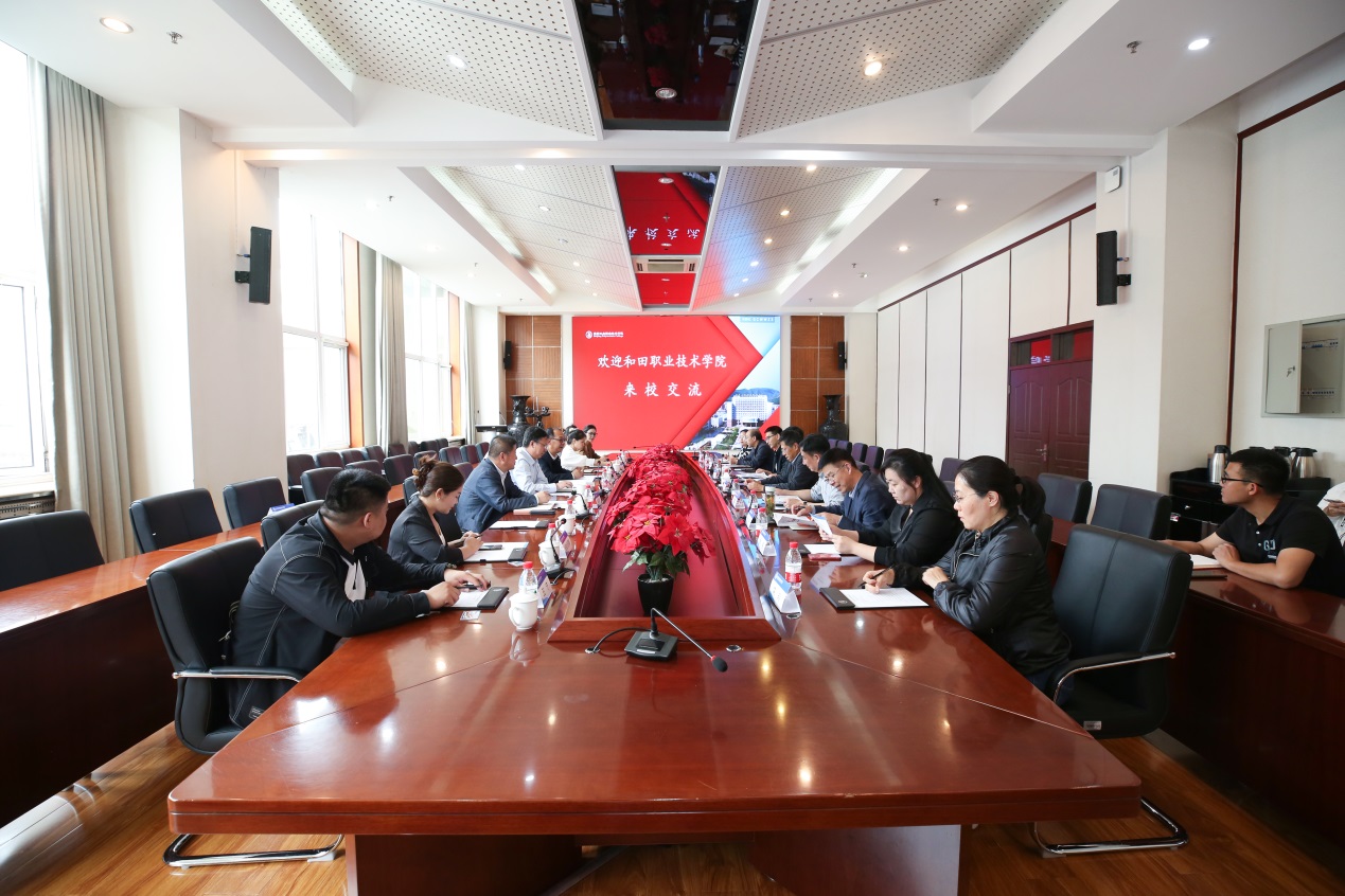 王志文书记对和田地区教育事业发展情况以及和田职业技术学院发展历程作了介绍,对我校近些年给予的帮助表示感谢,并希望未来我校能在学生技能大赛、师资培养、实训室建设、专业平台搭建等方面提供更多的支持与帮助。