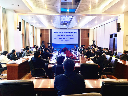 2020年10月29日,开云网在第四会议室(匠心楼106)举办了“遵守学术规范,加强学术道德建设,促进科研能力有效提升”专题讲座。各二级学院科研骨干教师、团队负责人共60余人参加。