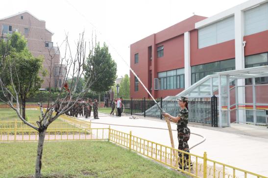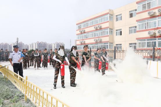 演练分为消防疏散逃生、消火栓实操、灭火器实操三个科目。早上九点,2023级新生以连级为单位进行演练。
