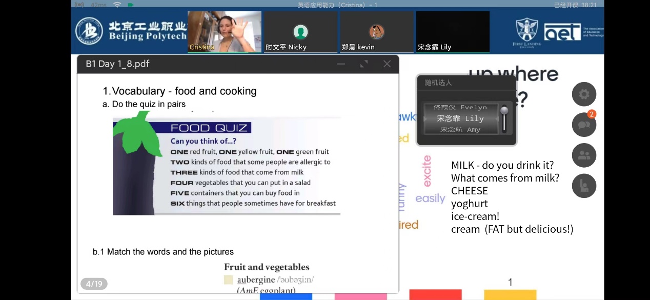 2022年7月18日上午10点,北工院双高建设-学生跨文化交际及语言应用能力提升夏令营于线上顺利开营。本次夏令营为期10天,来自机电工程学院、建筑与测绘工程学院、信息工程学院、文法与管理学院以及基础教育学院5个学院50名优秀学生共同参加了此次夏令营。开营仪式由我校国际处高远老师主持,英国教育科技协会夏令营项目学术负责人Cristina Iacobone女士、我校国际处副处长孟晴、机电工程学院副书记兰健,建筑与测绘工程学院副书记任长顺,信息工程学院副书记郎博,文法与管理学院副书记张军,基础教育学院副书记张炜,以及英国教育科技协会国际事务联络总监潘丽等领导共同出席了本次夏令营开营仪式。