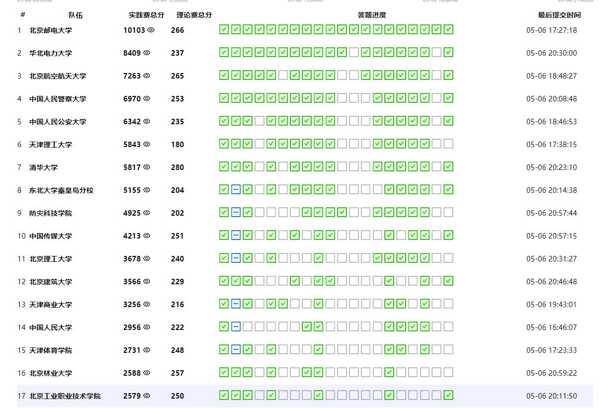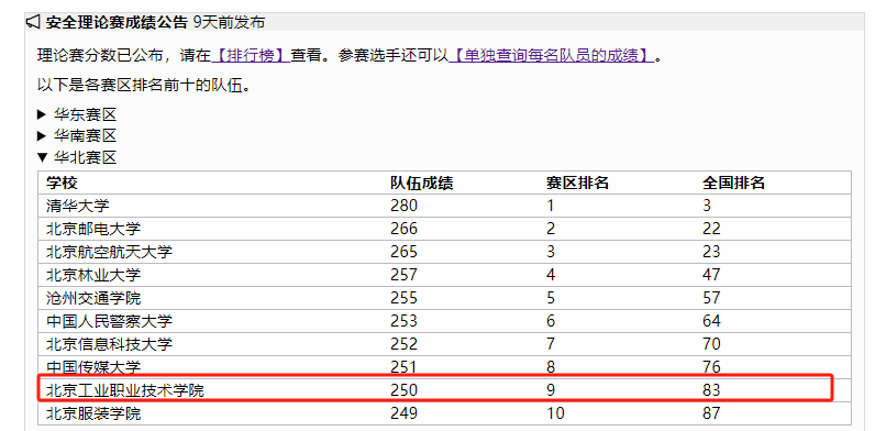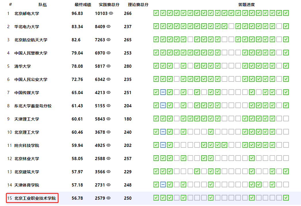 我校由信息中心主任孙社文带队,信息中心3名教师及信息工程学院1名学生组成我校参赛团队,将平时的网络安全管理运维工作融入赛事准备,比赛中不畏强手,团结协作,沉着应对,展示了我校多年来网络运维工作积累的实力。尤其是在4月30日第一阶段理论赛比赛成绩在华北赛区排名第9名,全国排名第83名。超越许多知名高校。