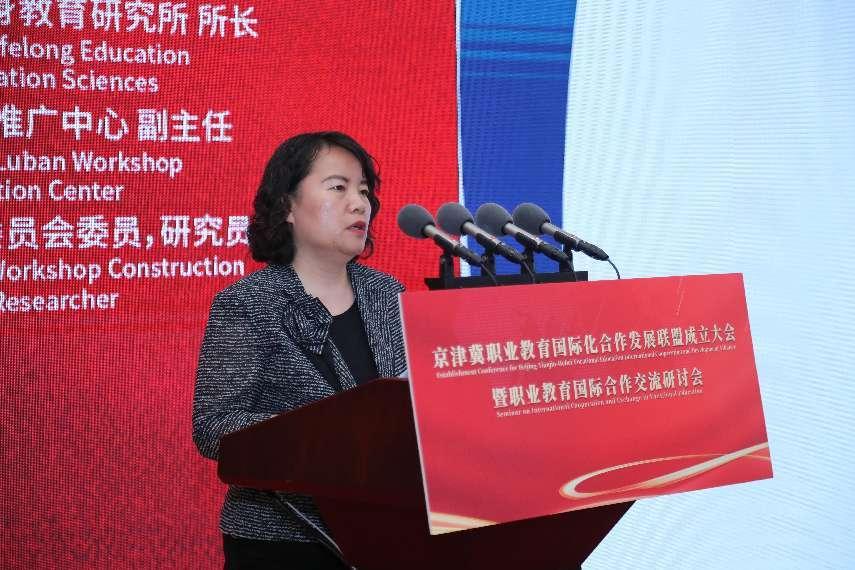 天津市教育科学研究院终身教育研究所所长、天津市鲁班工坊研究与推广中心副主任杨延女士作题为《“一带一路”视域下职业教育国际合作与创新发展》的主旨演讲