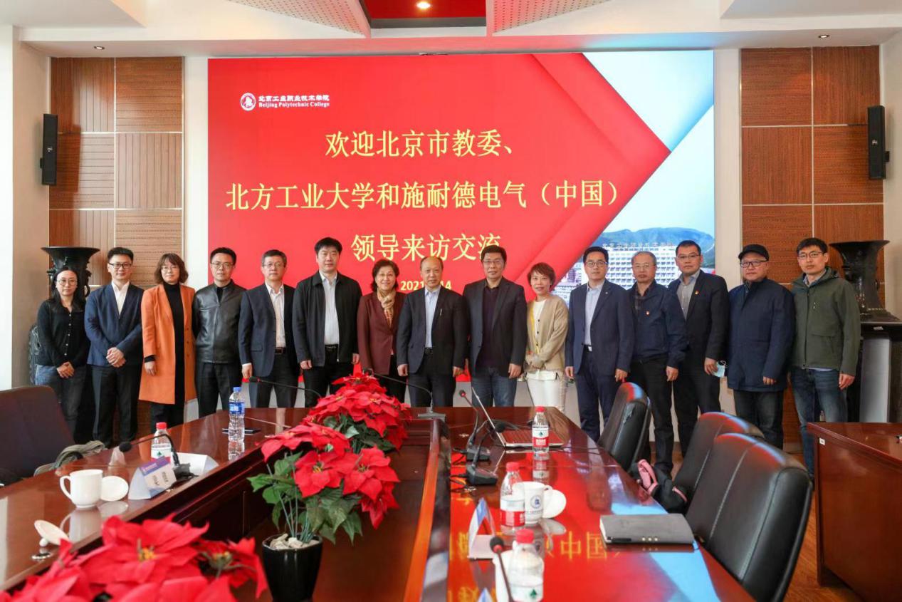 4月14日,北方工业大学副校长栗苹一行到访我校,深入研讨贯通联合培养项目等事宜,参加研讨会有北京市教育委员会二级巡视员、职业教育与成人教育处处长王东江,我校校长安江英、副校长刘兰明,施耐德电气(中国)有限公司负责人以及我校办公室、教务处、机电学院以及电信学院等负责人。