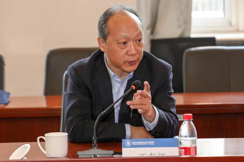 刘兰明副校长简要介绍了我校基本办学情况和办学定位,介绍了我校五大专业群以及近几年围绕国家双高以及北京市特高项目建设任务,在教学改革与研究方面取得的成果。重点介绍了我校学生技能大赛、教师教学能力大赛、精品课程建设、职业基本素养工程等方面的具体做法和取得的成绩。他强调,我校实施“三教”改革,重视培养学生的专业技能和职业素养,持续提升我校人才培养质量。