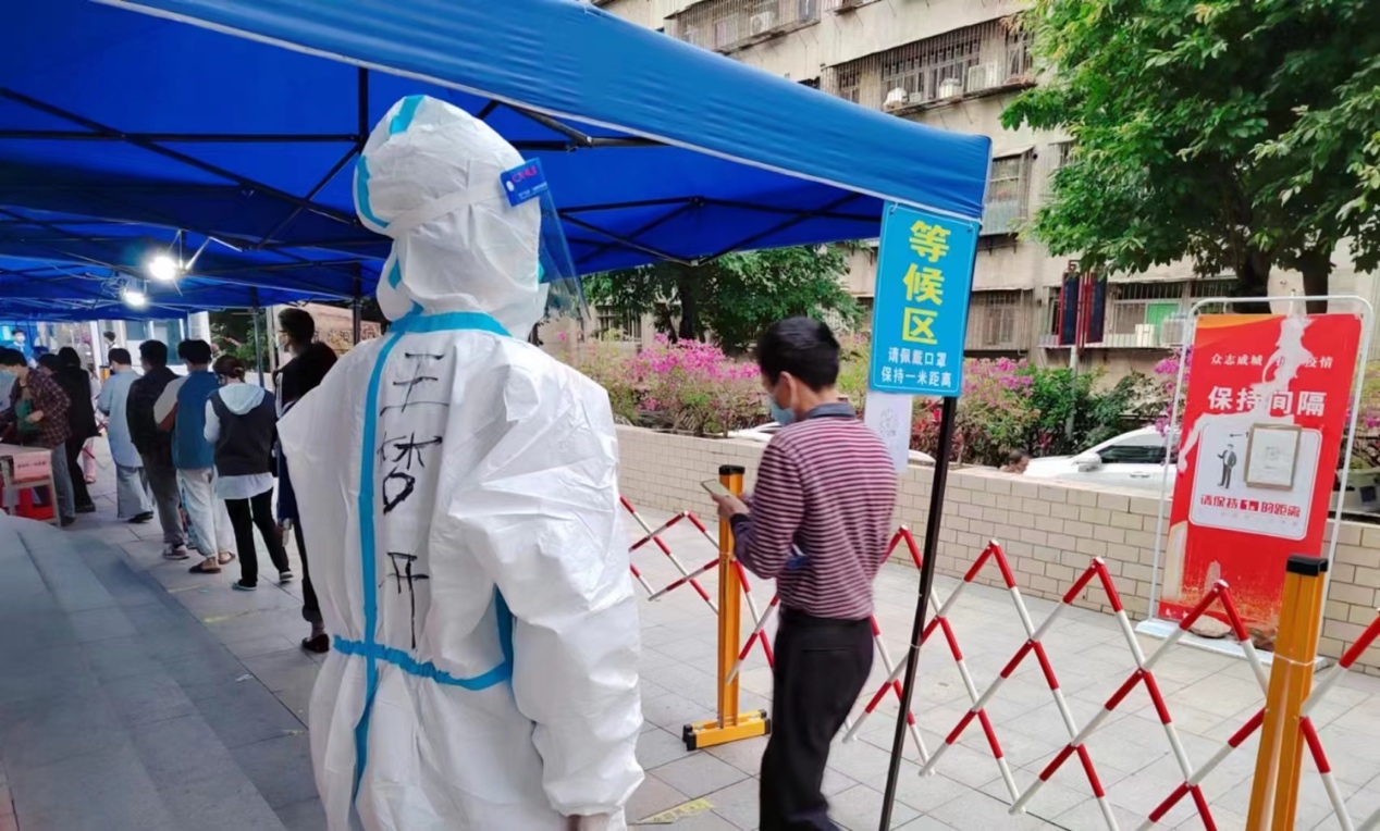 信息工程学院网络1971班的孙宇璐表示,在每一次的核酸检测中,都能体会到不一样的感受。深深感受到什么是初心使命,什么是责任担当。志愿服务中认识了许多小伙伴,只要我们团结一心、众志成城,一定能打赢这场战“疫”。
