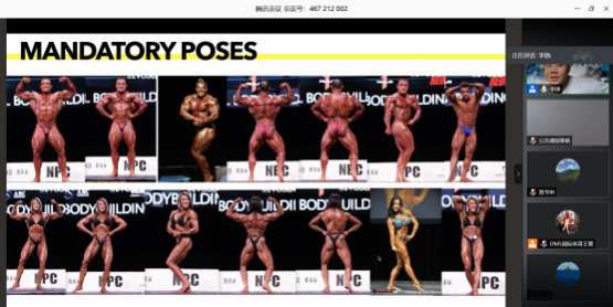 开班仪式后,奥林匹亚官方中国主裁李铮开始第一单元课程授课,主要针对奥林匹亚世界健身健美规则评判标准,包括健美、健体、比基尼、健康小姐等项目的规定动作和判罚标准进行详解。