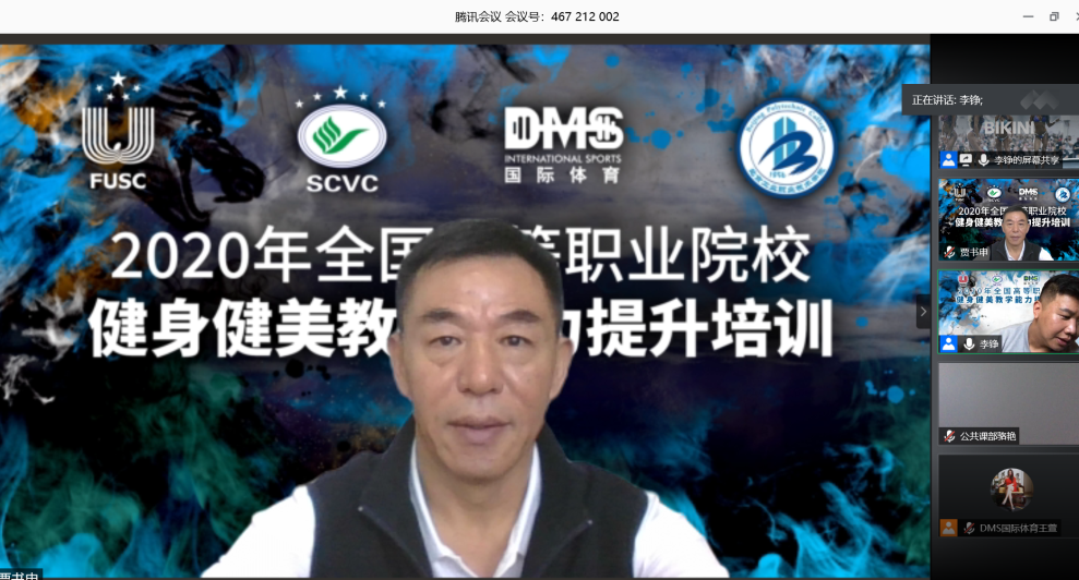 贾书申秘书长在本次线上培训开班仪式上致辞。他在致辞中强调,新常态疫情防控下组织线上教师教学能力提升培训具有重要意义,此次培训将带动全国高职院校体育竞赛与活动的恢复展开,为即将复赛的中国高等职业院校健身健美锦标赛(云比赛)打下基础。在9月22日习近平总书记召开教育、文化、卫生、体育领域专家座谈会发表重要讲话,提出“体育强国新路径”“体育是提高人民健康水平的重要途径,是满足人民群众对美好生活向往,促进人的全面发展的重要手段”“要坚持健康第一的教育理念”的大背景下,他要求参加培训的高职院校老师们精准把握习总书记对体育发展的重要论述,推动健身健美运动在校园体育中开展,促进本校、本地区校园体育文化建设,丰富校园体育文化内涵,发挥好主动性和带动性,为开云网体育工作发展做出新贡献。