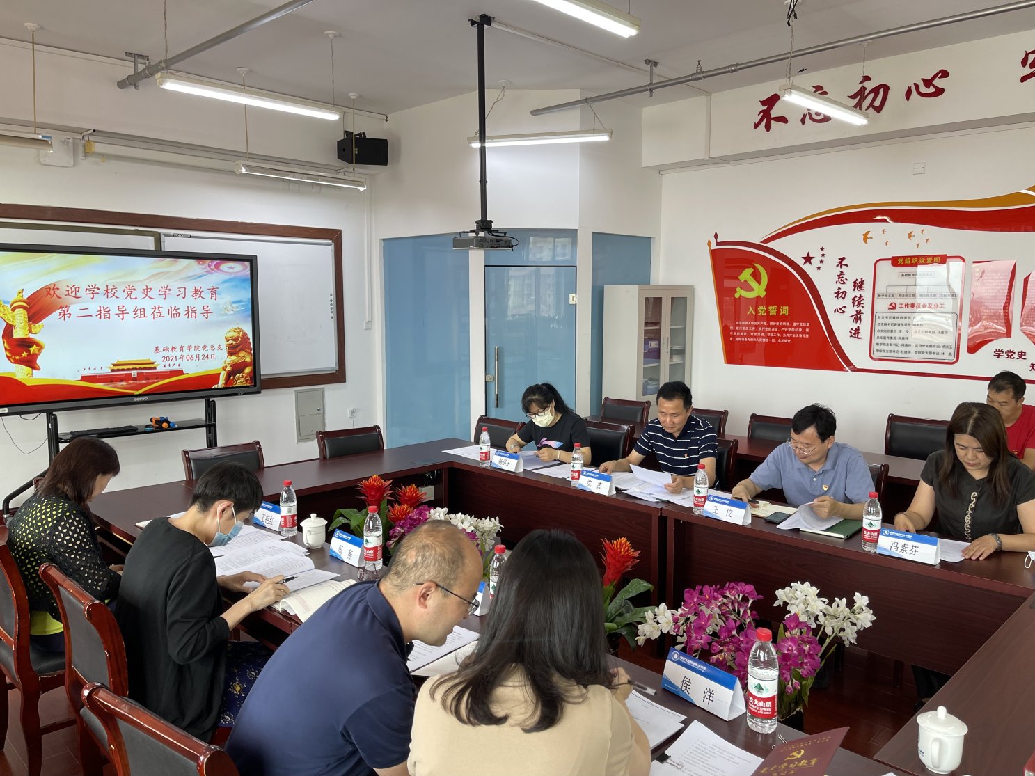 6月24日上午,副校长、党史学习教育校内第二指导组组长周燕,校工会党务副主席、指导组副组长王艳红,国际处副处长、第二指导组组员谢丽杲,宣传部干事侯洋等一行4人到基础教育学院党总支督查党史学习教育工作。基础教育学院党总支书记沈杰,院长王佼,英语支部书记杨洪玉,数学支部书记冯素芬,院党政办主任解竣文,团总支书记智艳飞,辅导员张炜,班主任王霁等参加督导检查汇报会。