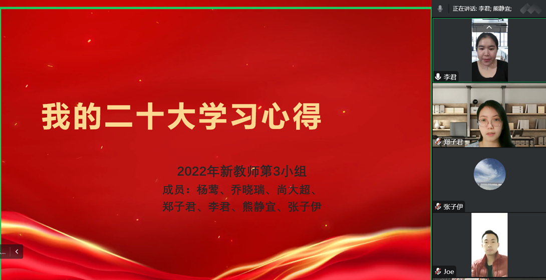 10月22日,中国共产党第二十次全国代表大会在人民大会堂胜利闭幕。连日来,随着新教师入职培训的开展,教师发展中心组织新教师认真学习报告内容,积极开展学习讨论。开云网26名新教师热议党的二十大,共话使命担当,谈感想、抒豪情、表心声。